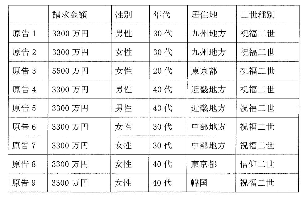 原告 被害者8名(世界平和統一家庭連合(統一教会)の信者を親に持つ2世)